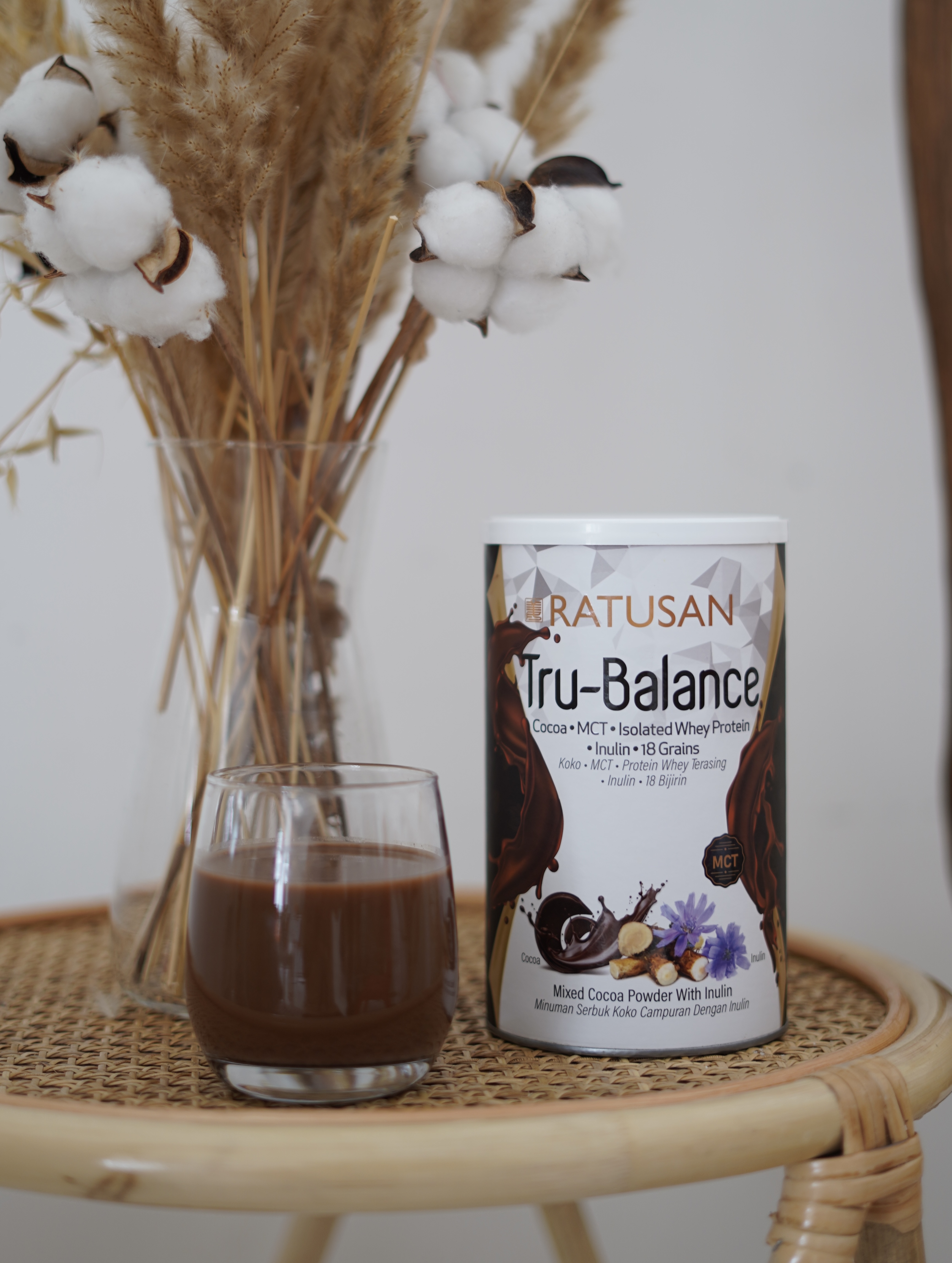 Tru-Balance combines MCT oil, isolated whey protein, inulin, cocoa, and 18 grains to support muscle growth, digestion, and brain function. With antioxidants and long-lasting energy, it boosts metabolism and aids in weight management, all while delivering a rich, guilt-free cocoa flavor. Perfect for active and health-conscious individuals seeking balanced nutrition. Helps promote a healthy digestive system, stable blood sugar levels and cardiovascular health, it also provides long-lasting energy and antioxidant protection, making it ideal for maintaining a healthy lifestyle. What does it help with: Enhances Promotes Provides Complete Nutrition Improves nervous system Boosts Enhances respiratory function How to Consume Key Ingredients Isolated Whey Protein 18 Grains Inulin Cocoa Vitamin B Complex Choline Inulin Isomalto-oligosaccharides (IMO)